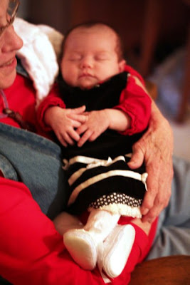 Emory in the Christmas dress that Grandma (Terry) got her.